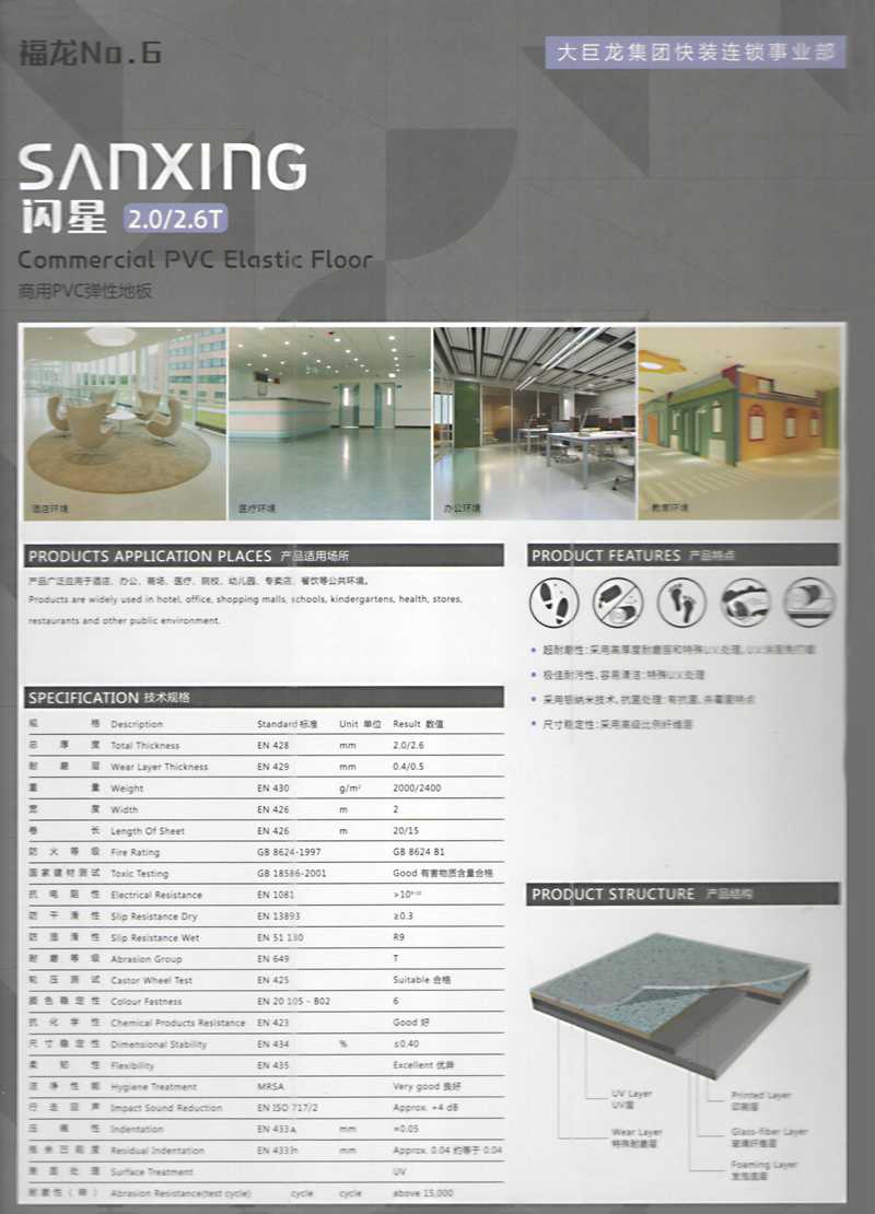 专业生产 PVC 商用地板